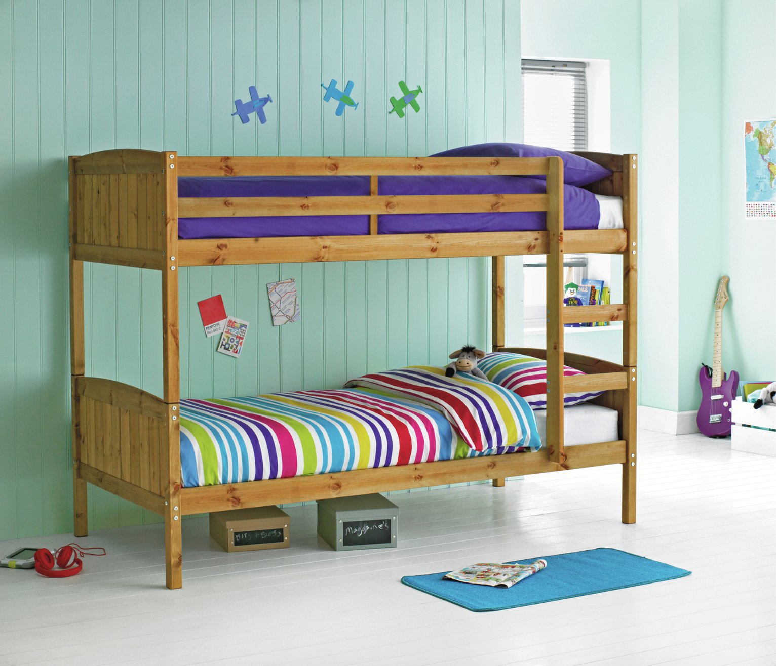 Argos Home Detachable Pine Bunk Bed & 2 Kids Mattresses