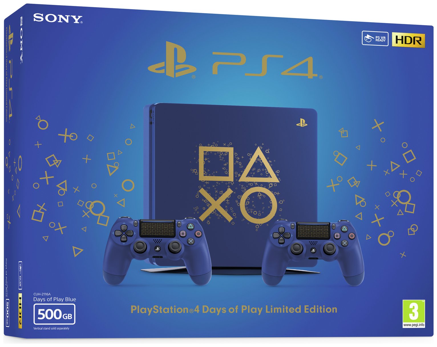 PS4 500GB Days of Play Console and Two Controllers - Blue