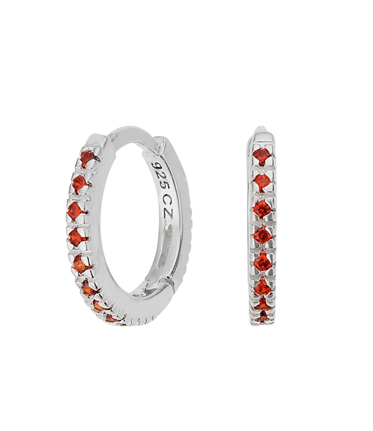 Revere Sterling Silver Red Cubic Zirconia Huggie Hoops