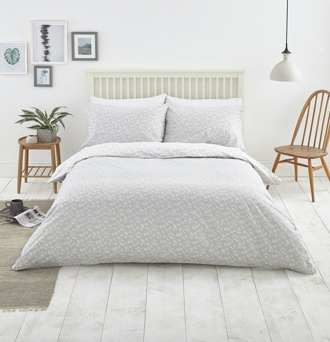 Argos Home Dove Grey Ditsy Floral Bedding Set - Kingsize