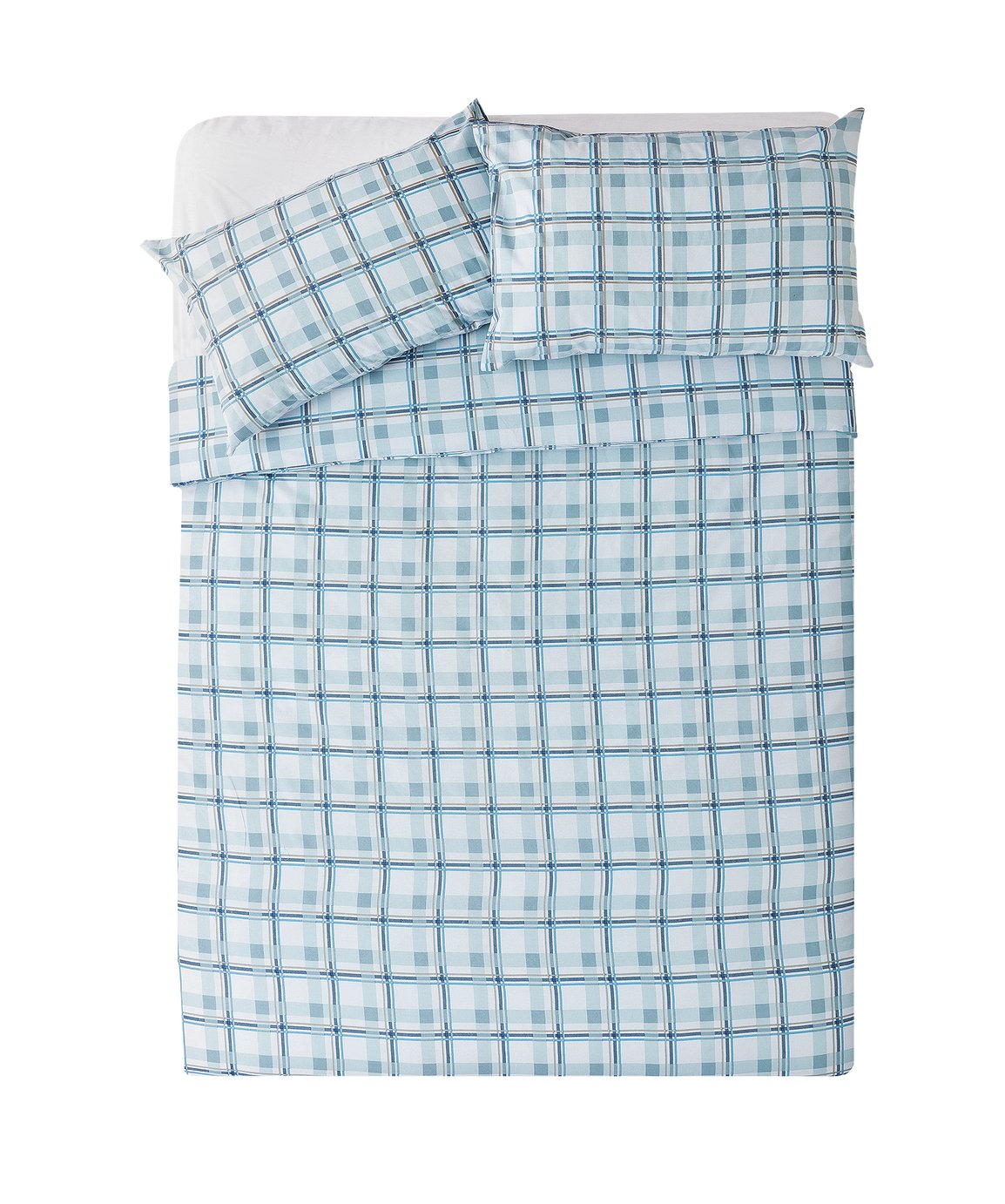 Argos Home Light Blue Check Bedding Set - Kingsize